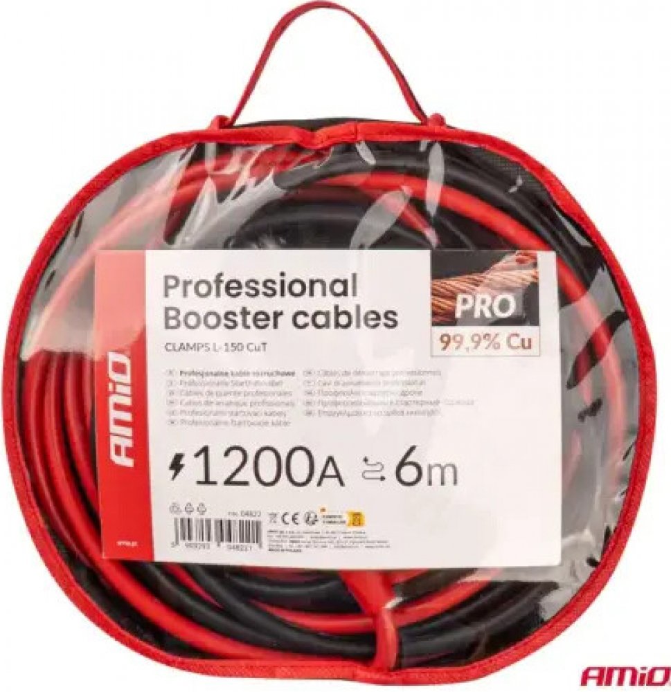 Profesionální startovací kabely 1200 A, 6 m, z 99,9 % mědi od firmy AMIO.
