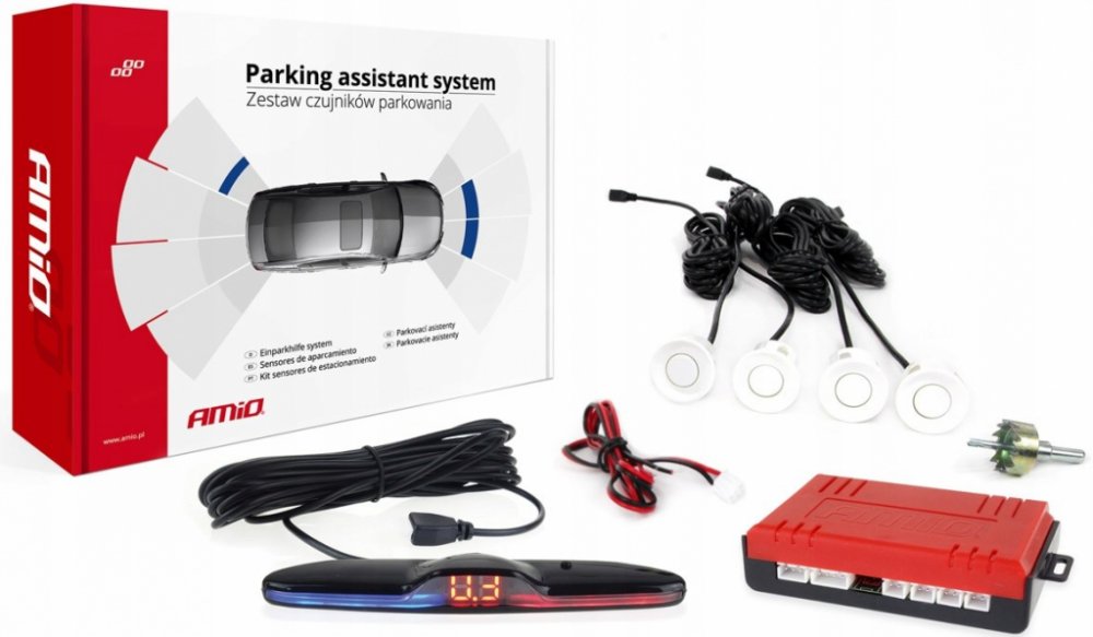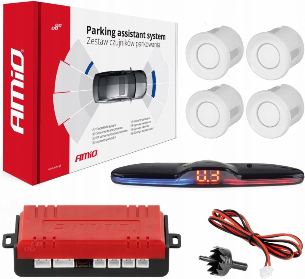Sada parkovacích senzorů MAX LED 4 senzory bílé AMIO-0✅Popis: