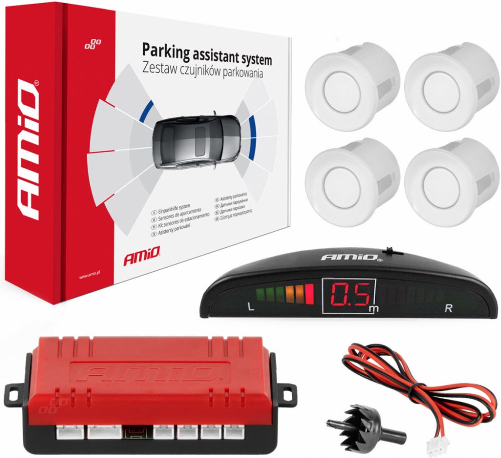 LED displej zobrazuje vzdálenost od překážky s přesností desetin metru. Má také zabudovaný reproduktor (bzučák), který vás upozorní na možnost úplného ztlumení spínače na skříni.