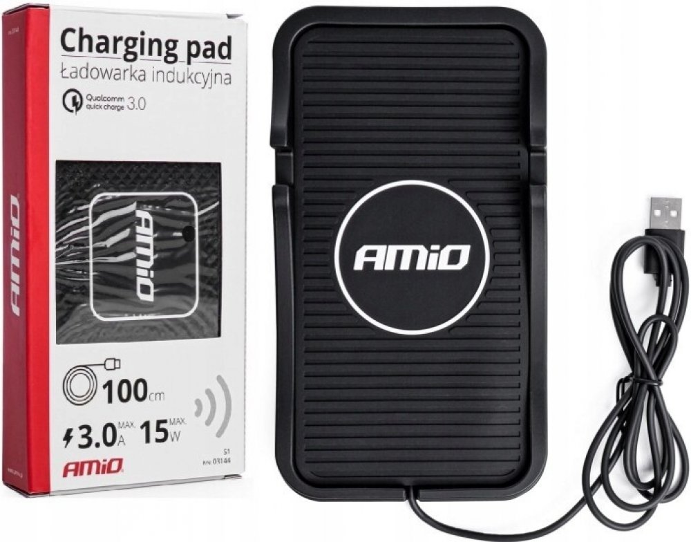 Amio Bezdrátová Qi nabíječka do auta 3.0 15W s USB, 186x103 mm
