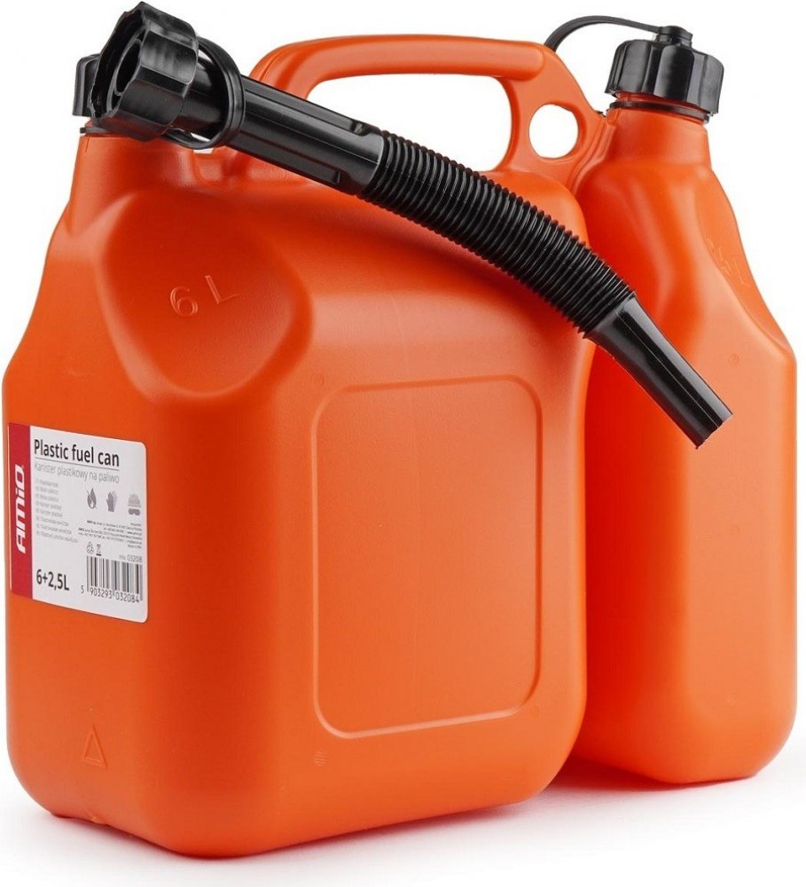 Plastový dvoukomorový kanystr o objemu 6 a 2.5 litrů s certifikací UN od firmy AMIO.