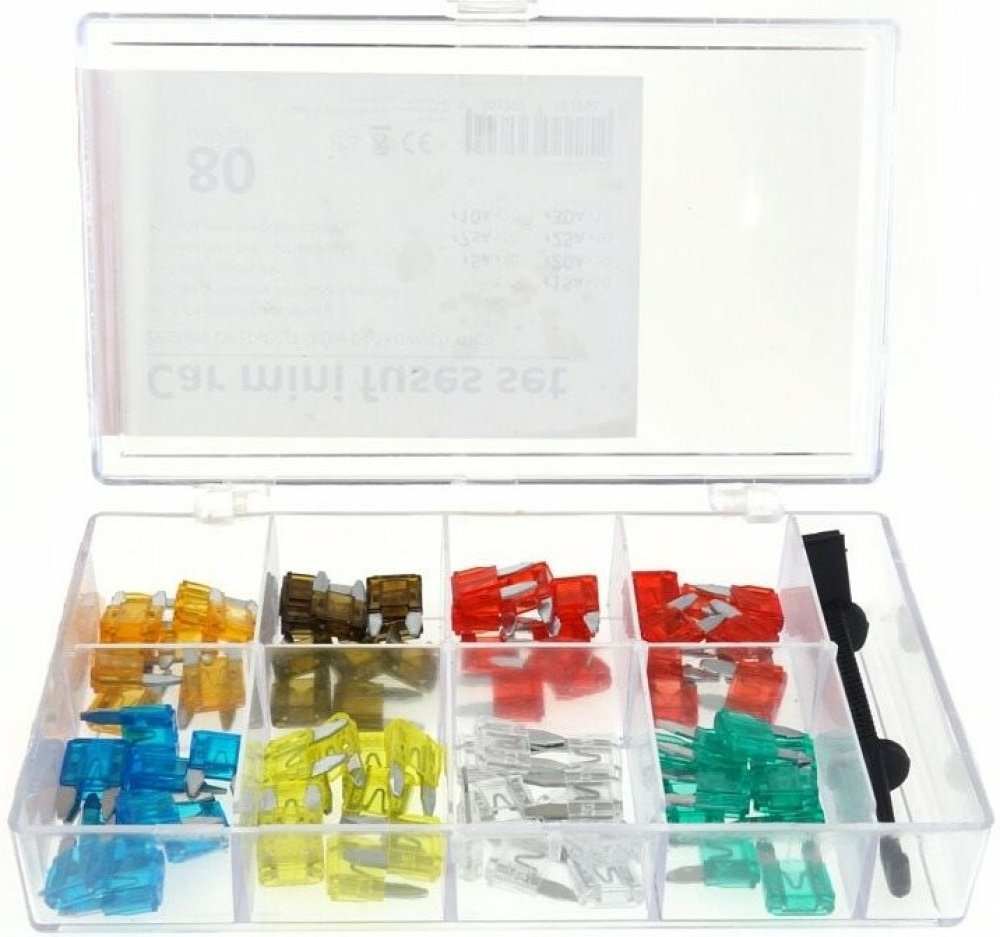 Obsah balení:10x 5A, 10x 7,5A, 20x 10A, 10x 15A, 10x 20A, 10x 25A, 10x 30A, 1x svorky