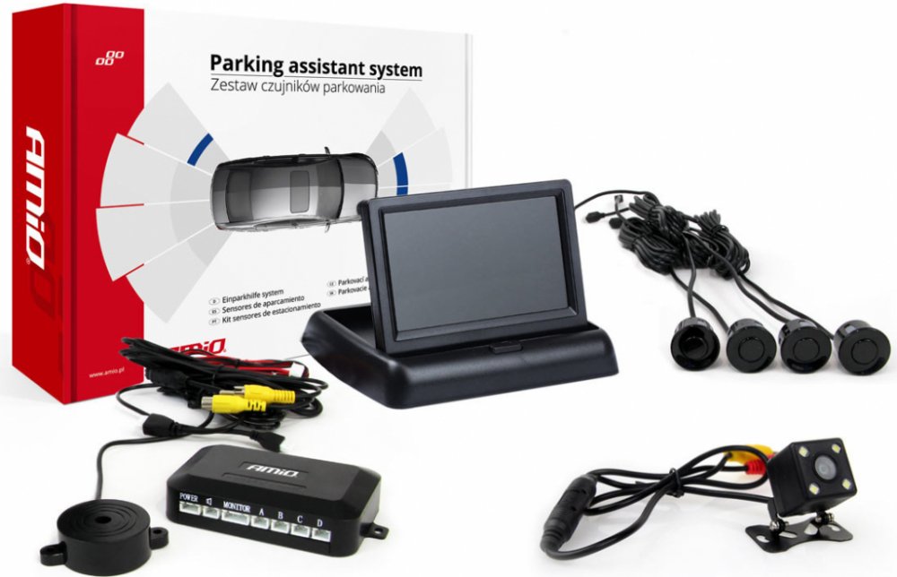 AMiO Sada asistentů parkování 4 senzory černé TFT02 4,3 `s kamerou night vision CAM-315-LED