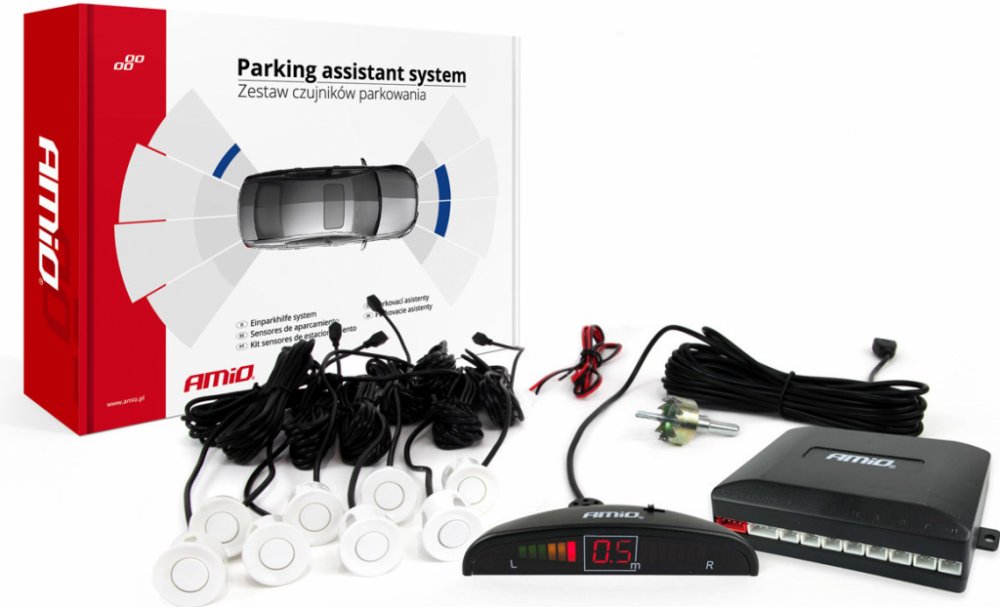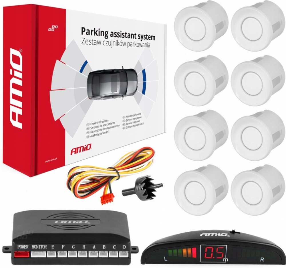 AMiO Sada asistentů parkování LED 8 senzorů bílých