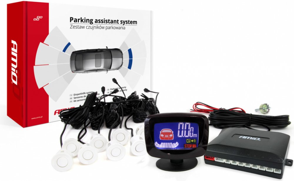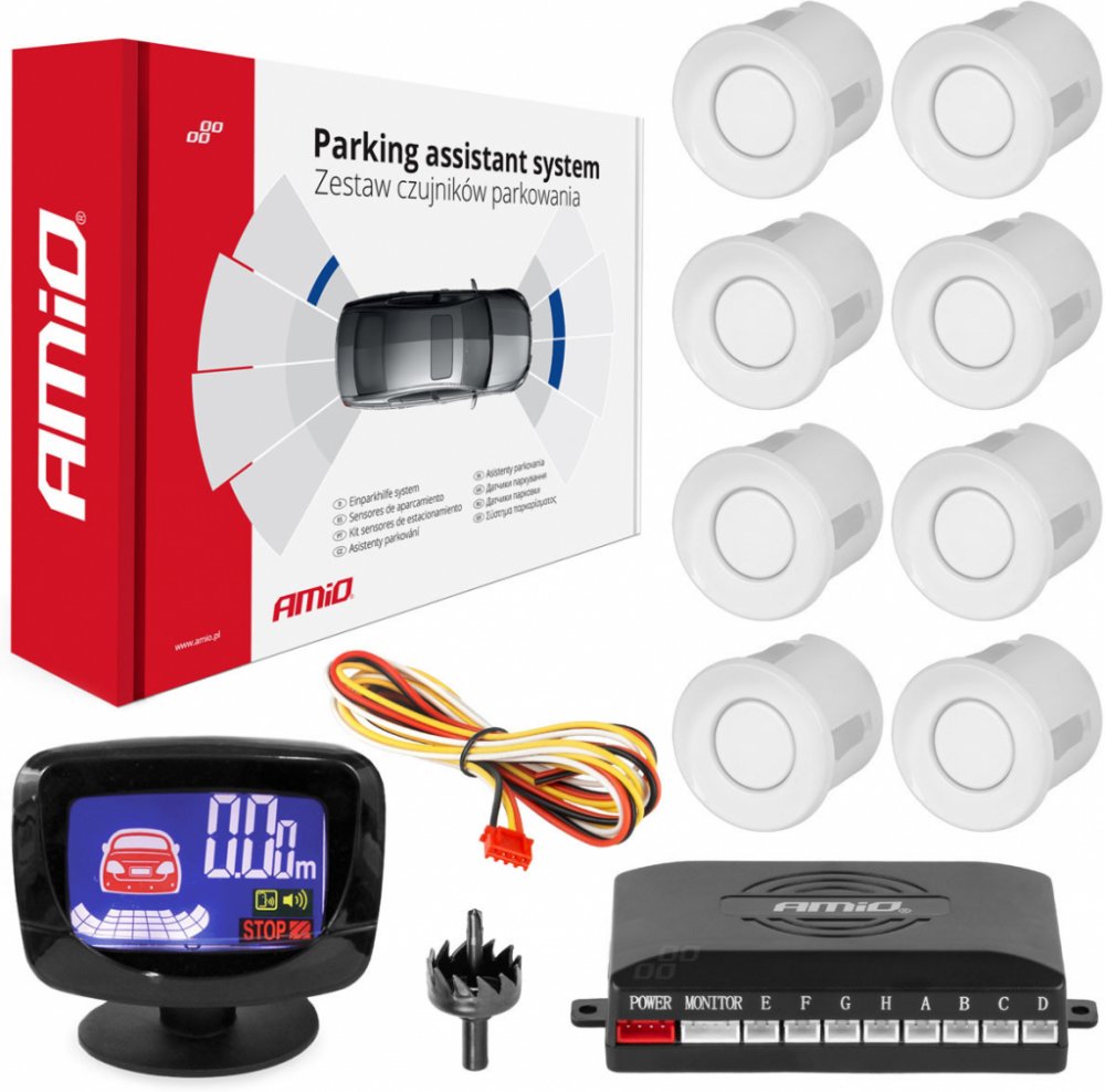AMiO Sada asistentů parkování LED-GRAF 8 senzorů bílých