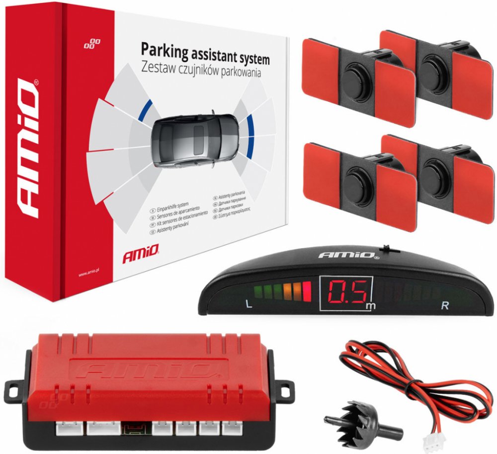 AMiO Sada parkovací asistent 4 senzory černá vnitřní 16,5mm