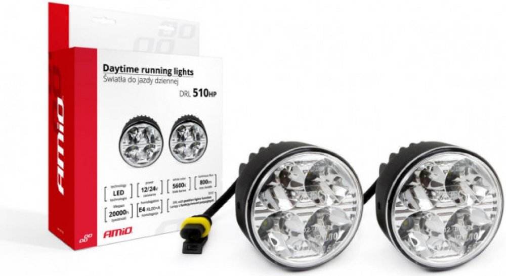Světla pro denní svícení DRL 510HP se používají v kulatých otvorech připravených pro mlhovky a také na rovných plochách nárazníku. To je možné díky použití maskovacích límců, které úspěšně zakryjí montážní otvor v nárazníku a skryjí tak velikostní rozdíly v místě po mlhovkách. Z technického hlediska dává použití 1W SMD LED a dokonale lesklého reflektoru úžasný světelný efekt na silnici a zadní čás...