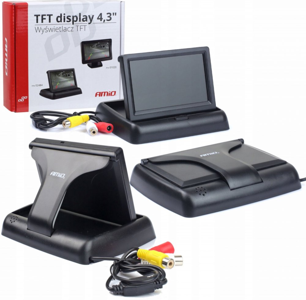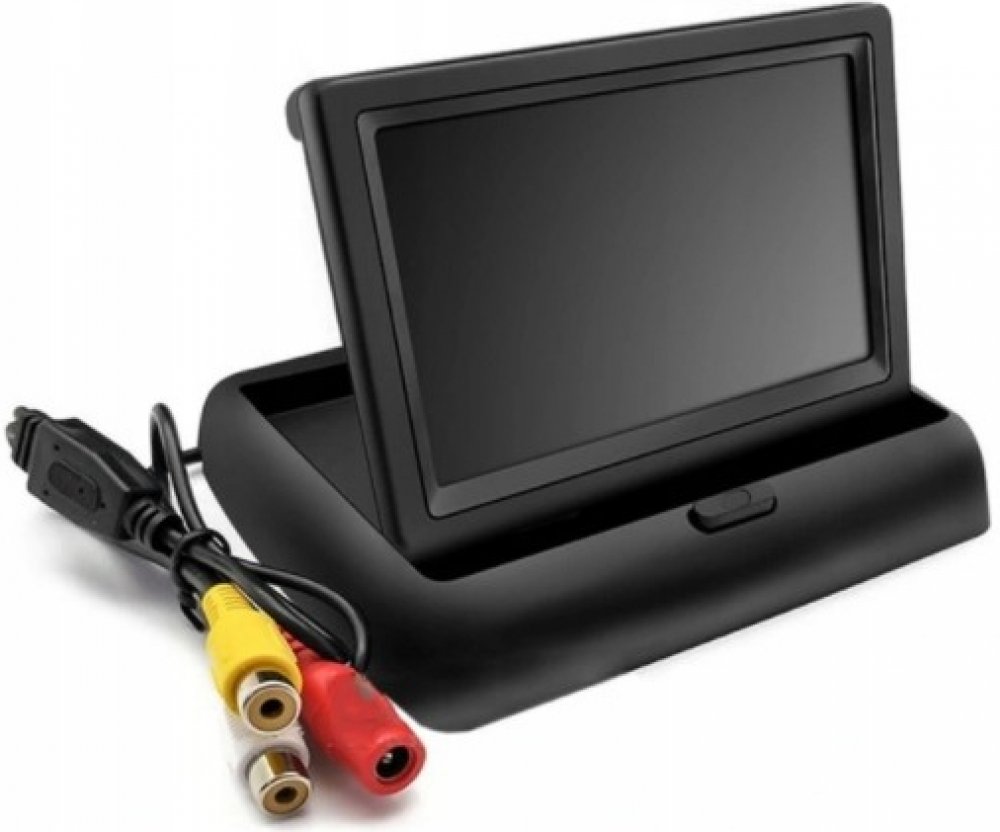 Automonitor s úhlopříčkou obrazovky 4,3" s možností připojení dvou zdrojů video signálu, např. zadní kamery a přenosného DVD.