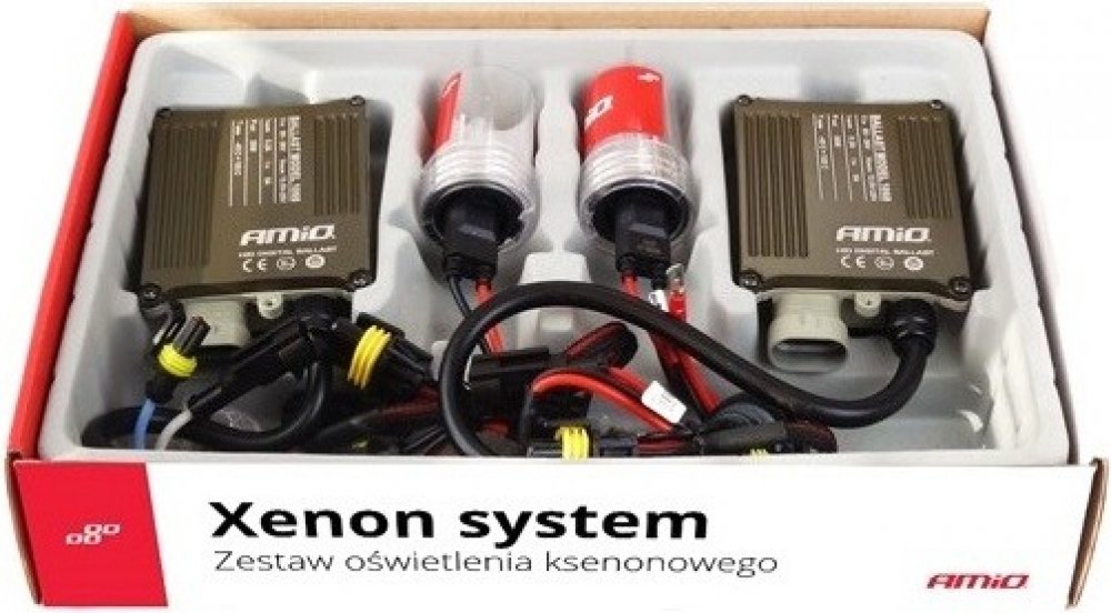 POZNÁMKA: tato sada je dodávána v bílých krabičkách. Takto nám zboží dodává výrobce. Barevná krabice není součástí produktu. Ballasty a výbojky jsou s logem Amio.