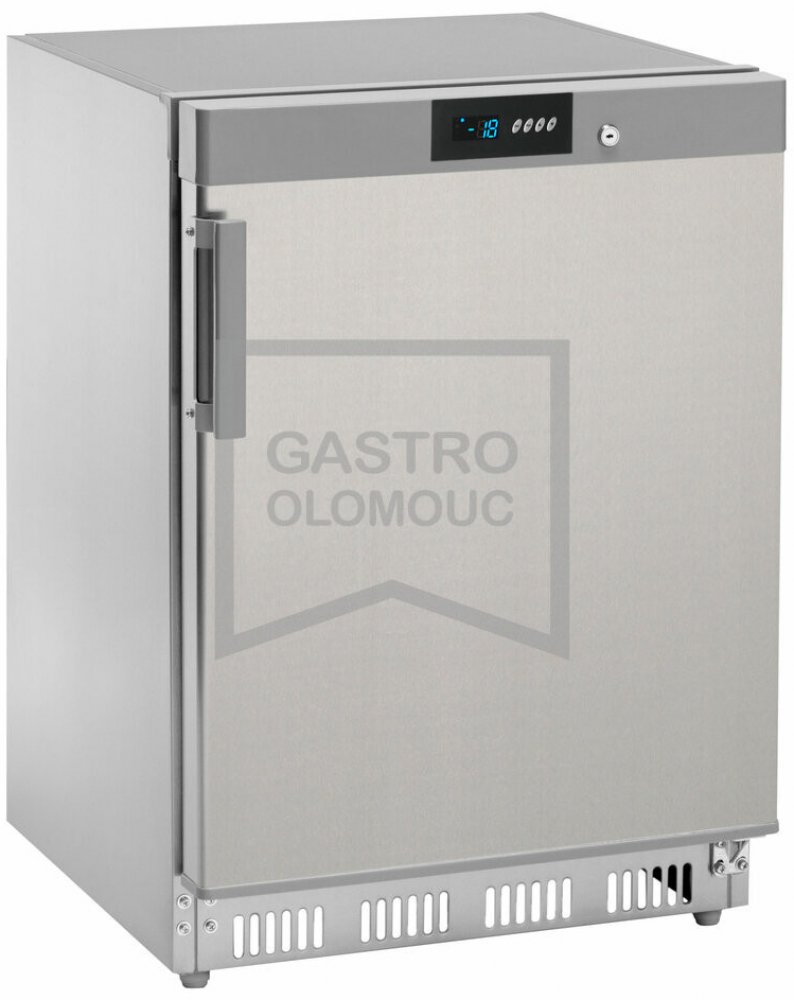 Mrazící skříně AKD/F s ekologickým chlazením, statické intenzivní chlazení integrované do pevných mrazících polic (2x pevná mrazící police v rozměru - 480x415 mm, rozteč polic 170 mm). Mrazící skříně jsou vhodné pro uchování různých druhů balených potravin. Snadné elektronické ovládání s displejem integrované ve dveřích, manuální odtávání, skříně jsou ve standardu vybaveny zámkem dveří a antikonde...