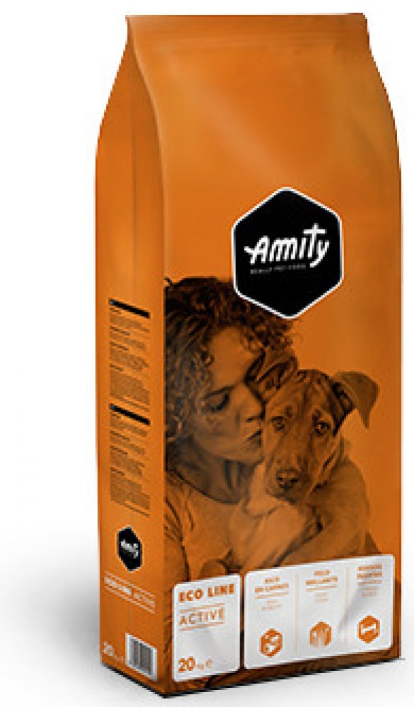 AMITY eco line dog ACTIVE 20kgSložení:dehydrovaný masový protein (40%)obilovinyvedlejší produkty rostlinného původu (řepné řízky min. 2%)oleje a tuky (drůbeží tuk min. 7%)minerální látkyAnalytické složky:hrubý protein 32,0 %hrubý tuk 13,0 %hrubá vláknina 2,2 %anorganická hmota 12%vlhkost 10 %Nutriční doplňkové látky v 1 kg:Vitamín A 34.000 UI/kg, Vitamin D-3 2.000 UI/kg, Vitamin E (dla-tokoferolac...