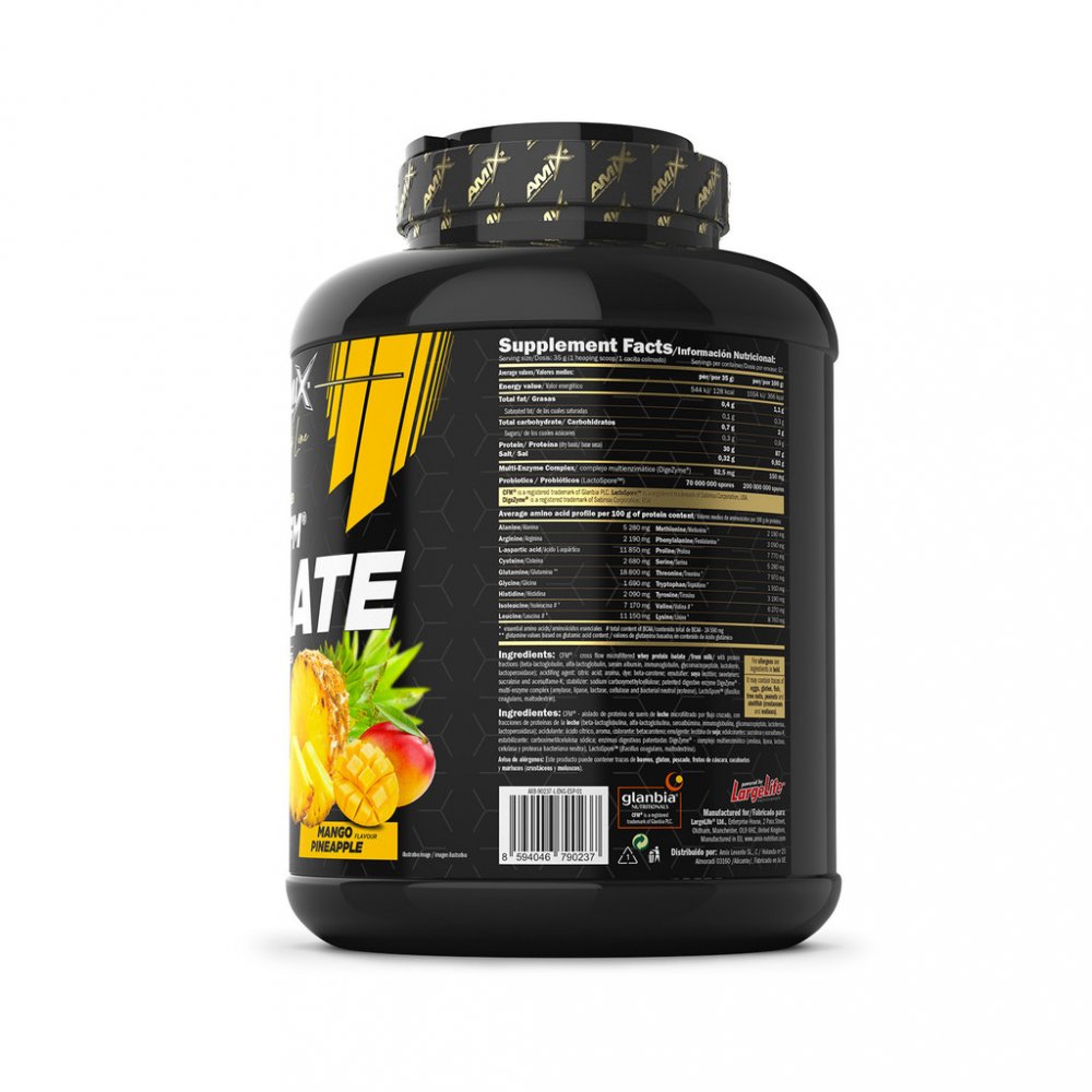 Mango & Ananas: CFM® - cross flow mikrofiltrovaný syrovátkový proteinový izolát /z mléka/ s proteinovými frakcemi (beta-laktoglobulin, alfa-laktoglobulin, sérový albumin, imunoglobulin, glykomakropeptid, laktoferin, laktoperoxidáza); regulátor kyselosti: kyselina citrónová; aroma, barvivo: beta-karoten; emulgátor: sójový lecitin; sladidla: sukralóza a acesulfam-K; stabilizátor: sodná sůl karboxymethylcelulózy; patentovaný trávicí enzym DigeZyme® - multienzymový komplex (amyláza, lipáza, laktáza, celuláza a bakteriálně neutrální proteáza), LactoSpore™ (Bacillus coagulans, maltodextrin).