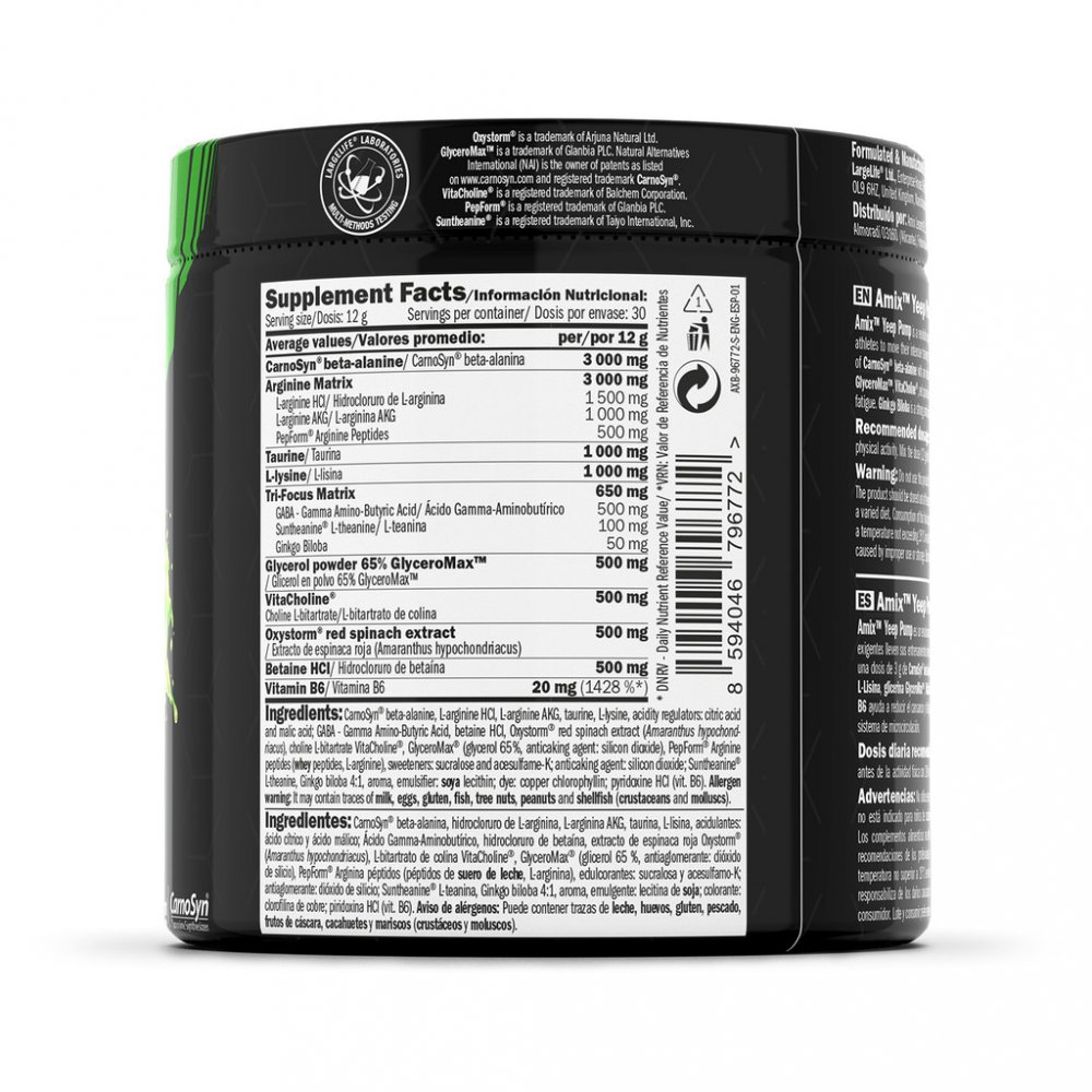 Tento osvěžující a chutný nápoj je založen na dávce 3g CarnoSyn® Beta-alaninu a obohacen o Arginin Matrix, Tri-Focus Matrix, Taurin, L-lysin, glycerin GlyceroMax™, VitaCholine®, extrakt z červeného špenátu Oxystorm® a Betain. Vitamin B6 přispívá ke snížení únavy a vyčerpání. Ginkgo Biloba je silný antioxidant a podporuje mikrocirkulaci krevního systému.