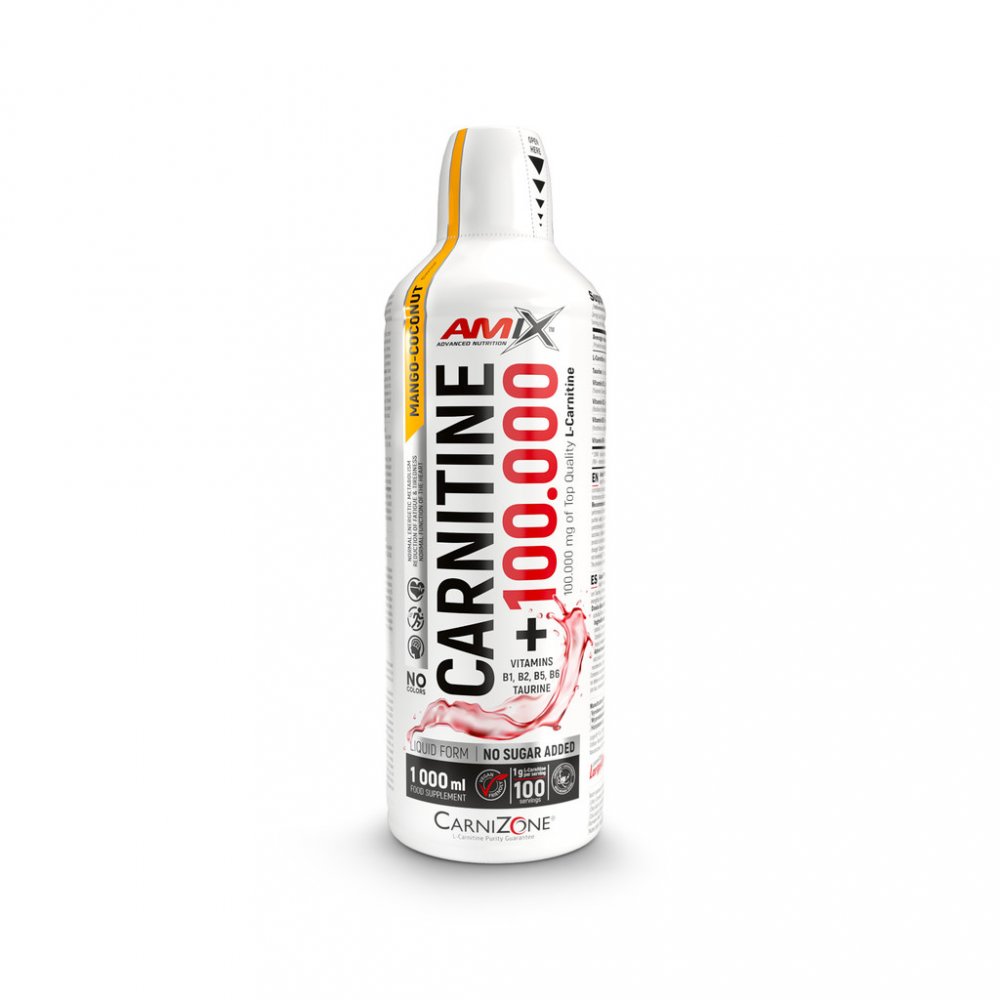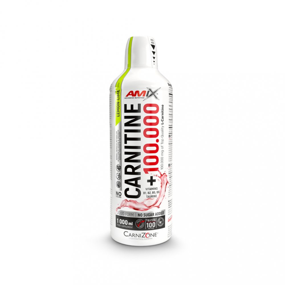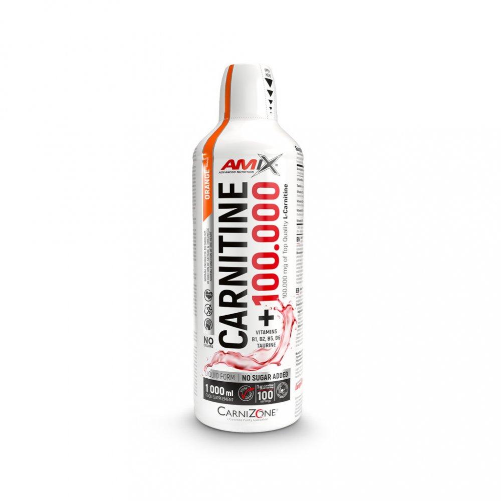 Carnitine 100.000 od Amix je kvalitní karnitin v tekuté formě se silným složením a s lahodnou chutí. Carnitine 100.000 je koncentrovaná forma L-Karnitinu doplněná o taurin a B - vitamíny, které pomáhají snižovat míru únavy a vyčerpání a podporují normální energetický metabolismus (vit.B2, B5, B6). Vitamin B1 navíc přispívá k normální činnosti srdce a k normální psychické činnosti.