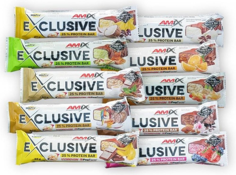 Amix™ Exclusive bar je proteinová tyčinka s minimálním obsahem 25% bílkovin. Exclusive Protein Bar 85g