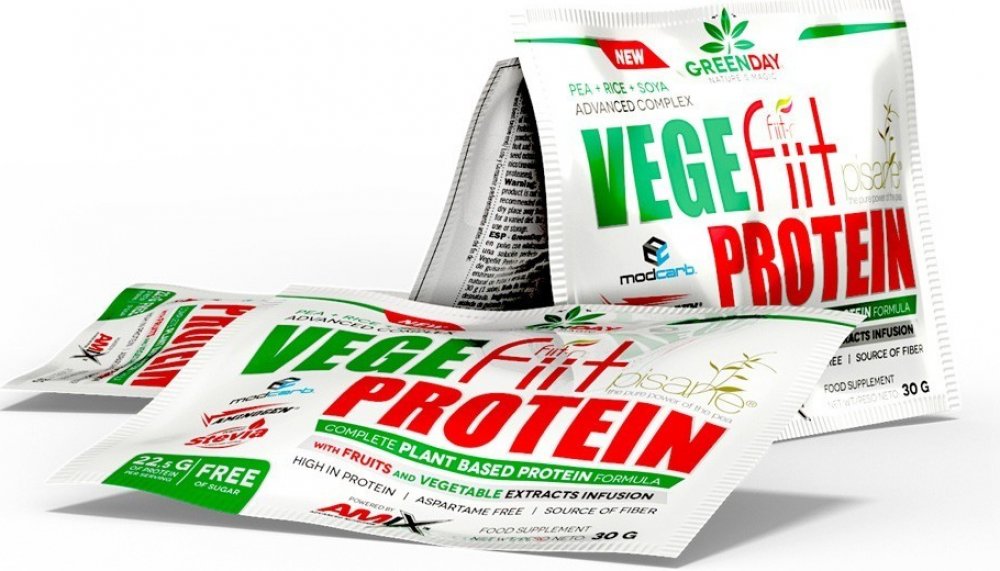 GreenDay® Vegefiit Protein je perfektní řešení pro každého, kdo hledá bílkovinný produkt rostlinného původu. Skládá se z hrachového bílkovinného izolátu Pisane®, rýžového proteinu a sojového proteinu obohacené o proteázové enzymy AminoGen®, vícezrnný matrix ModCarb™ a ovocno-zeleninový komplex Fiit-ns®.