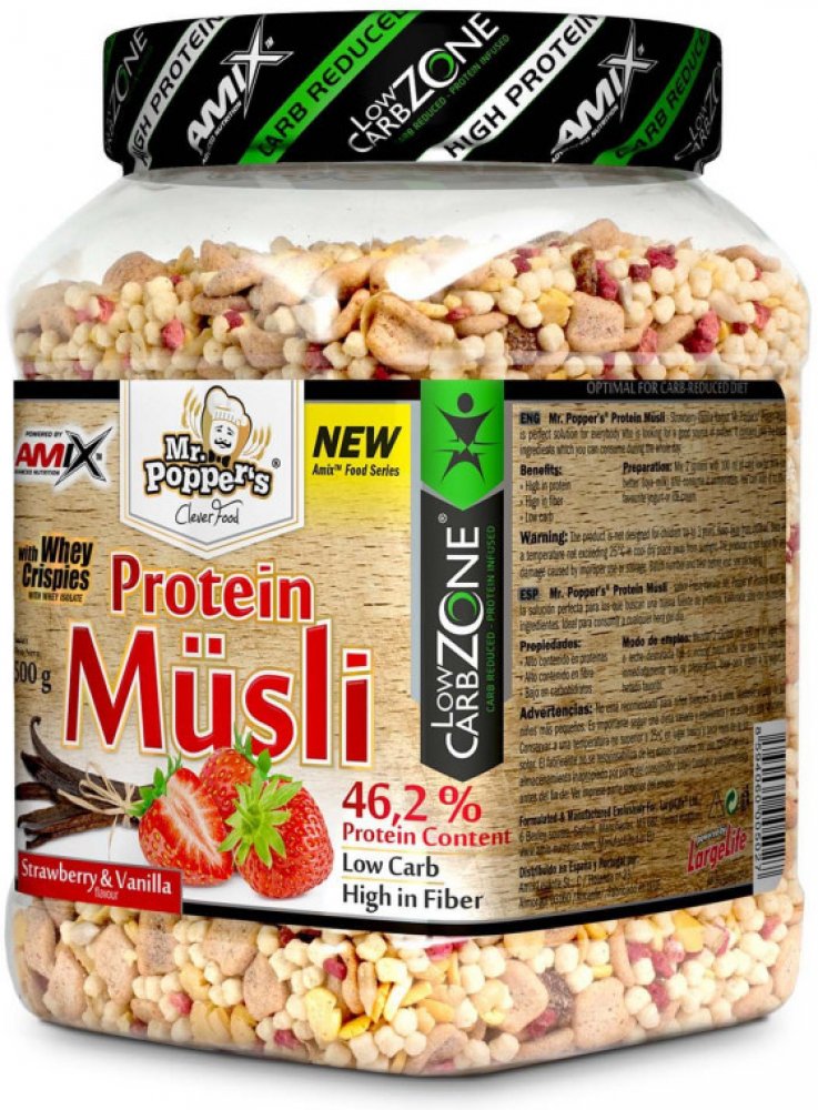 Mr. Popper ´s® Protein Müsli je perfektní řešení pro každého, kdo hledá potravinu bohatou na bílkoviny. Směs obsahuje pouze kvalitní výběrové suroviny, které můžete konzumovat během celého dne.