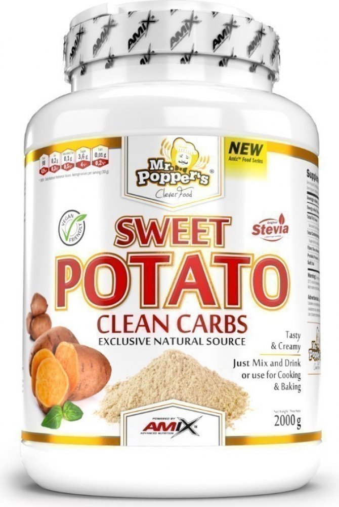 Amix Sweet Potato 1000 g Sweet Potato Clean Carbs je speciální směs na zastudena připravený nápoj z batátové mouky, která je bohatá na sacharidy, rozpustnou vlákninu a menší obsah dalších mikroživin. Benefity: Vynikající chuť a krémová struktura Rychlá příprava - stačí zamíchat a vypít Snadná příprava - za studena Vhodné jako surovina pro vaření Varianta bez příchutě je vhodná i na vaření a pečení...