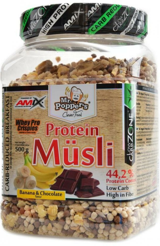 Amix Mr. Poppers Low carb Protein musli banán-čokoláda 500 g