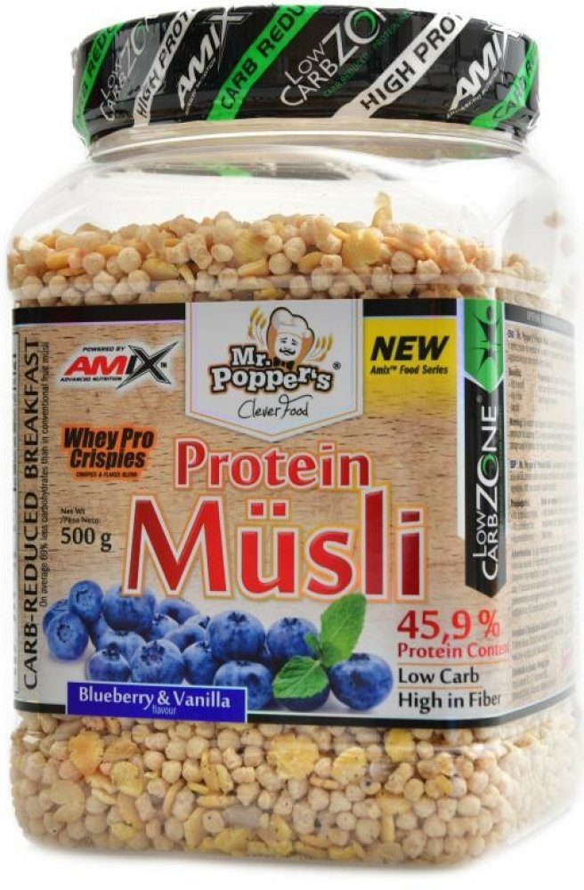 Amix Mr. Poppers Low carb Protein musli borůvka-vanilka 500 g