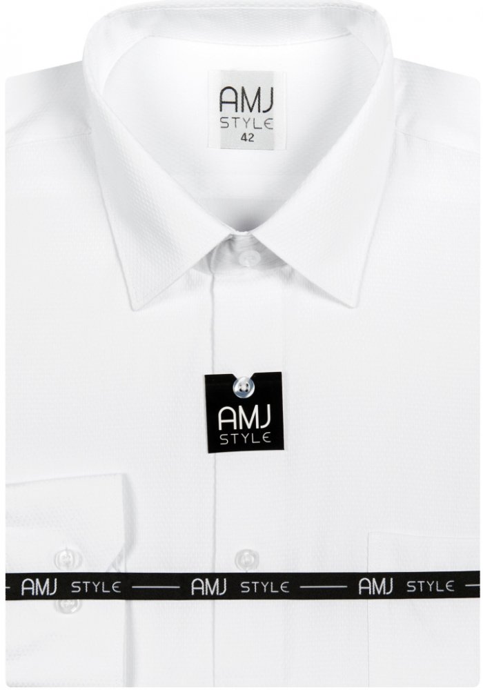 Společenská košile s dlouhým rukávem AMJ v klasickém rovném střihu Classic fit. Košile v bílé barvě s jemnou strukturou. Košile s kapsičkou. Zapínání na světlé knoflíky. Ušita z 60 % bavlny a 40 % polyesteru. Zapínání rukávů na klasický knoflík.