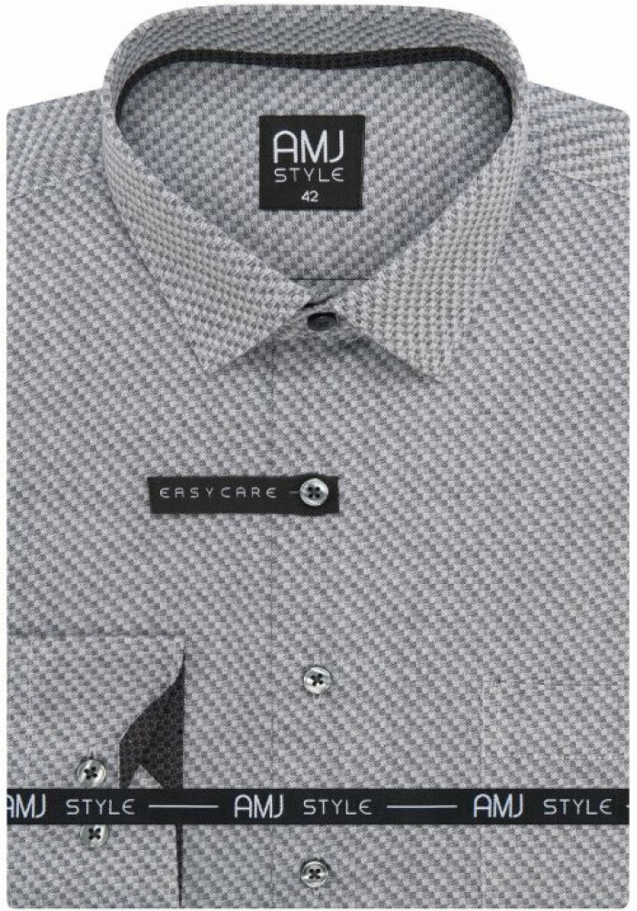 Košile s dlouhým rukávem od značky AMJ v šedé barvě s jemným kostkovaným vzorečkem. Zapínání na šedé knoflíky. Má klasický rovný střih. Má 60 % bavlny a 40 % polyesteru. Košile v úpravě EASY CARE, která zajistí snadné žehlení. Zapínání rukávů na klasický knoflík.