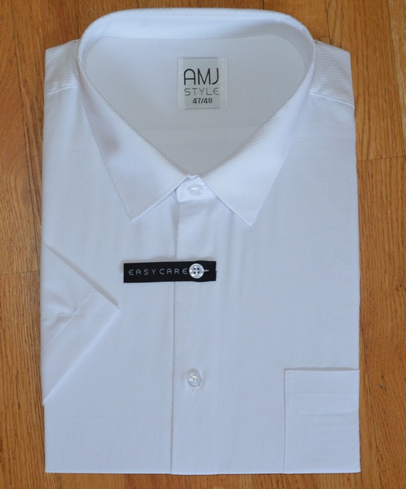 Košile s krátkým rukávem od značky AMJ v bílé barvě barvě s jemnými vzorem. Zapínání na světlé knoflíky. Na levé straně hrudi je kapsička. Má klasický rovný střih. Ušita z příjemného materiálu z 60 % bavlny a 40 % polyesteru.