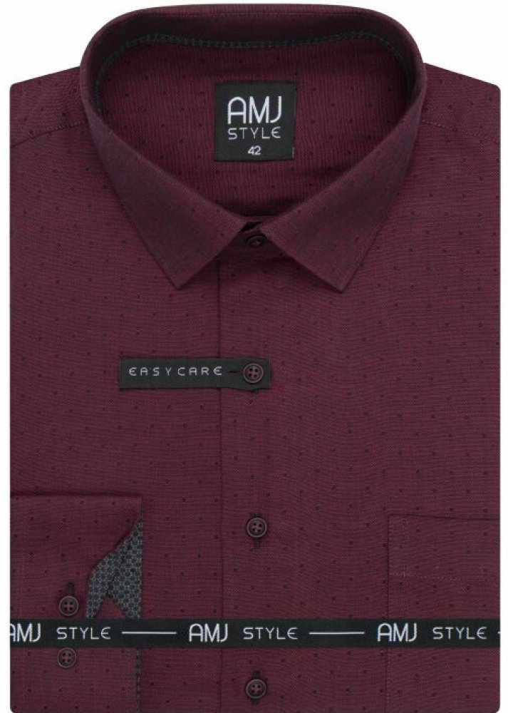 Košile s dlouhým rukávem od značky AMJ ve vínové barvě s jemným vzorečkem. Zapínání na vínové knoflíky. Košile bez kapsičky. Má projmutý střih SLIM FIT. Má 60 % bavlny a 40 % polyester. Košile v úpravě EASY CARE, která zajistí snadné žehlení. Zapínání rukávů na klasický knoflík.
