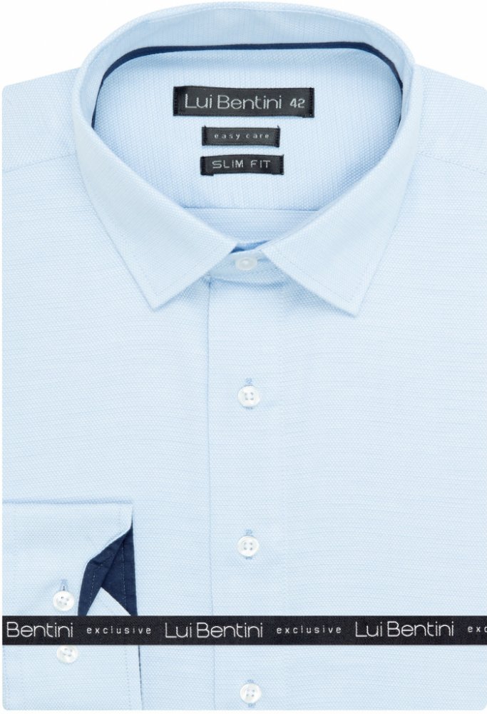 Luxusní pánská košile Lui Bentini s dlouhým rukávem v projmutém (slim) střihu. Pánská košile Lui Bentini má vzor velmi decentních bílých trojúhelníčků na světle modrém základě. Košile se hodí jak do zaměstnání, tak na běžné nošení i do společnosti. V této košili Vám bude velmi příjemně díky použití kvalitního materiálu (100% bavlny).