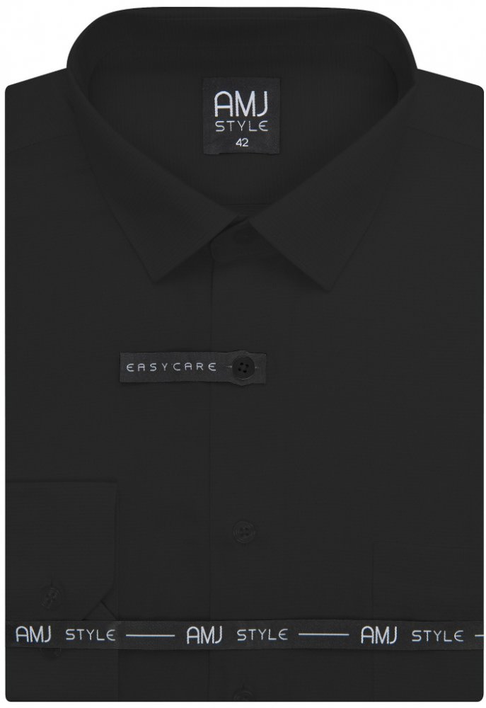 Košile s dlouhým rukávem od značky AMJ v černé barvě s jemnou strukturou. Zapínání na černé knoflíky. Košile bez kapsičky. Ušita v užším střihu Slim Fit z 60 % bavlny a 40 % polyesteru.