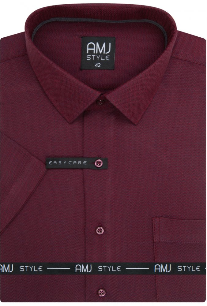 Společenská košile s krátkým rukávem AMJ v užším projmutém střihu Slim Fit. Košile v tmavě vínové a modré barvě s jemným vzorem. Košile bez kapsičky. Ušita z příjemného a komfortního materiálu z 60 % bavlny a 40 % polyesteru v úpravě EASY CARE, která zajistí snadné žehlení.