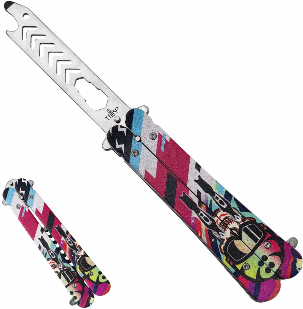 Originální a kvalitní balisong pro začínající i pokročilé filppery. Rukojeti jsou na krajích vystouplé, jako např. lyže nebo snowboard. Proto je tento motýlek vhodný i na hory, kde s ním můžete snadno opravit vázání na lyžích nebo snowboardu.
