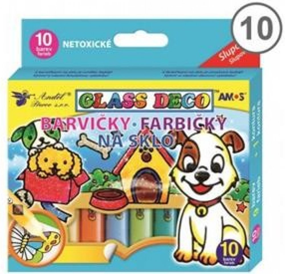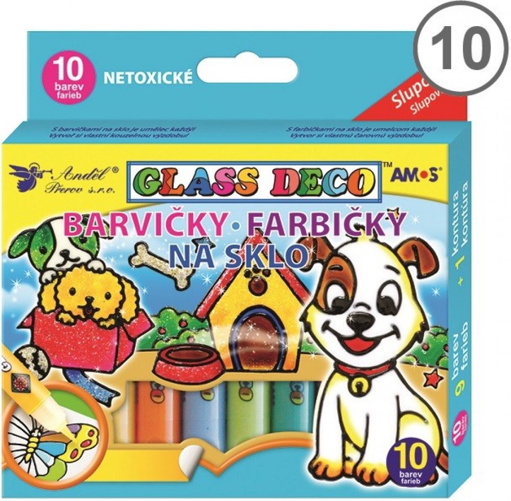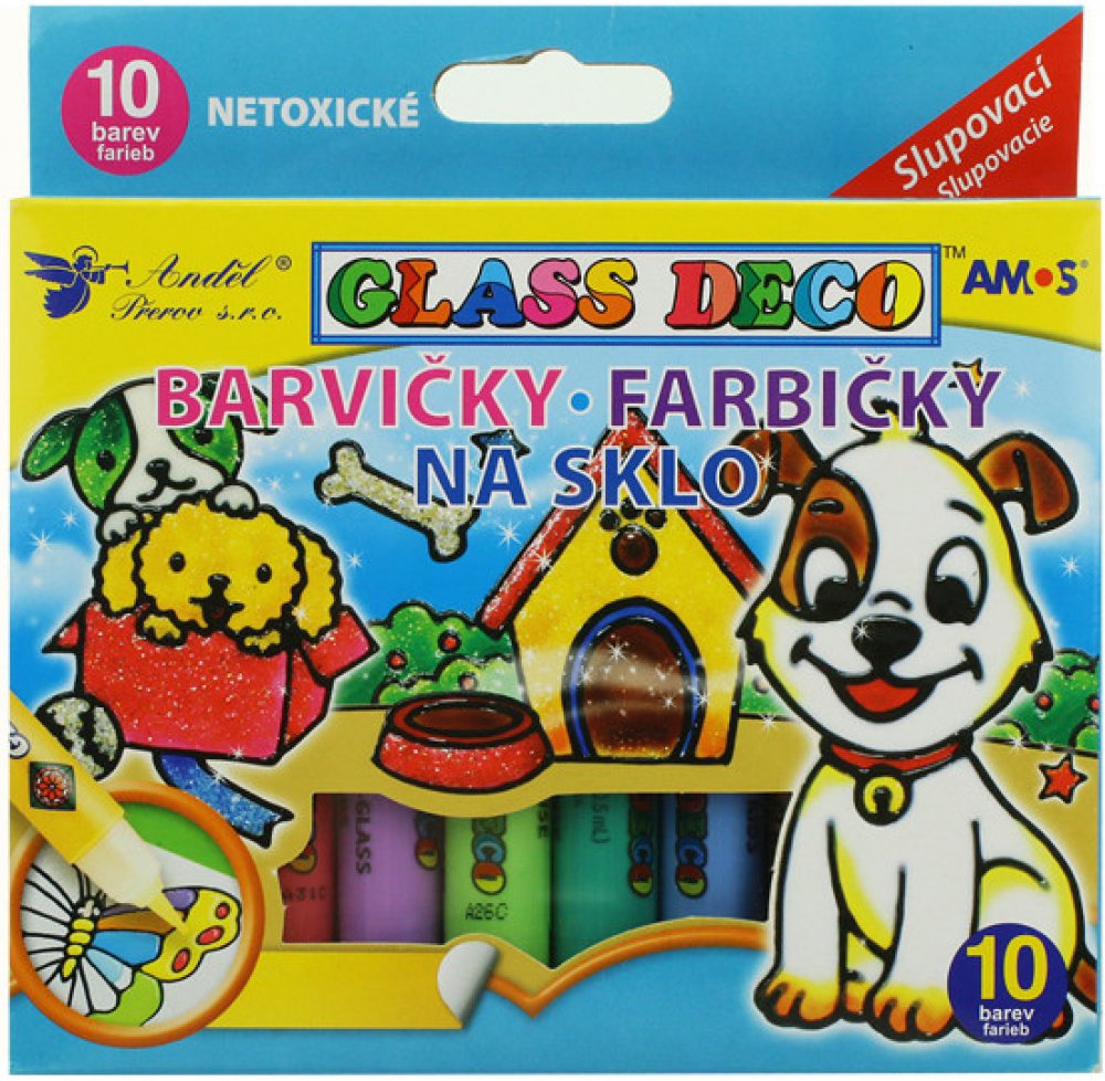 Glass Deco - Sada slupovacích barev na sklo. Vytvořený obrázek můžete po zaschnutí přenést a umístit na okno, zrcadlo, sklenici, dlaždici nebo jiné hladké podklady. S barvičkami na sklo je umělec každý! Vytvoř si