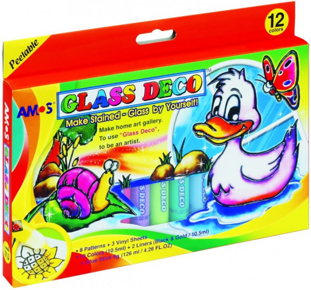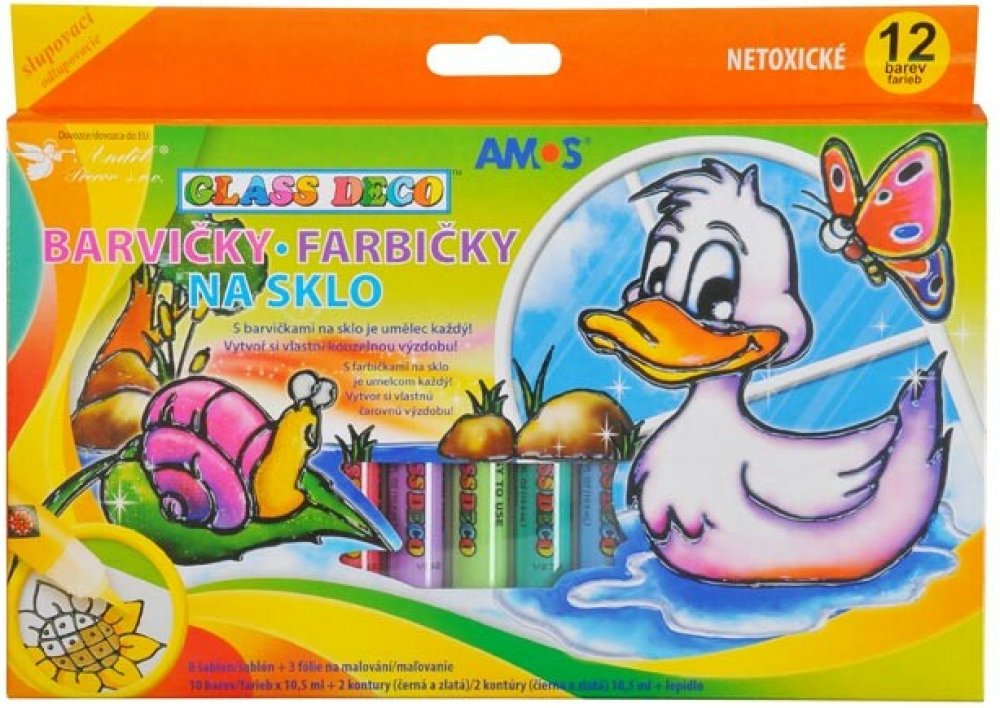 Amos Barvy na sklo sada 12 barev x ml + šablony