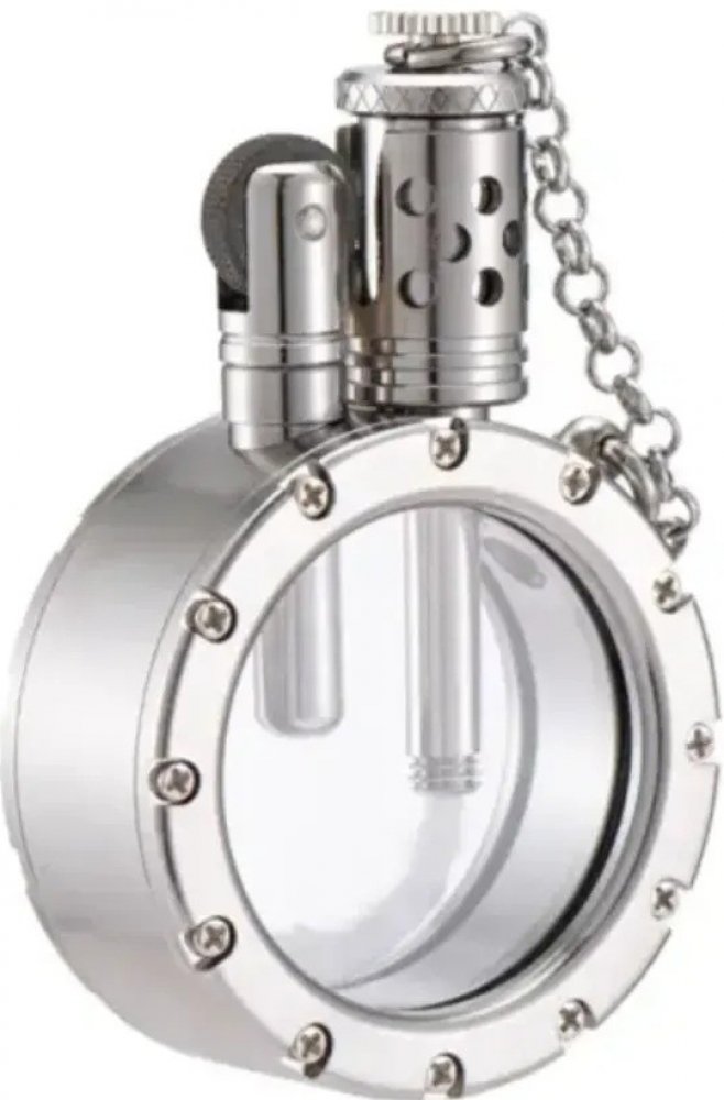 Retro benzinový zapalovač, vyzkoušená a testovaná konstrukce s průhlednými boky. Nový zapalovač není naplněn palivem.