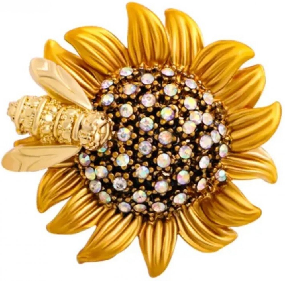 Brož ve tvaru květu se včelkou, ozdobená krystaly. Můžete ji nosit ke slavnostním událostem, vynosíte ji i ve všedních dnech. Krásně doplní a oživí vaše šaty nebo sako, ale i šálu nebo čepici.