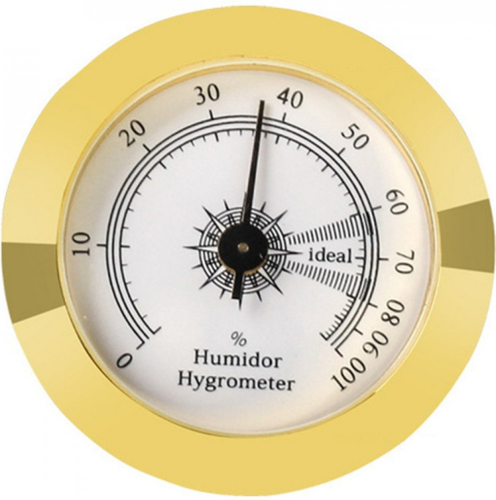 Analogový vlhkoměr pro měření vlhkosti v humidoru. Vlhkoměr je vyroben z kvalitního slitinového materiálu, který je trvanlivý a odolný proti korozi. Měření je čistě mechanické, takže není třeba vyměňovat baterie.