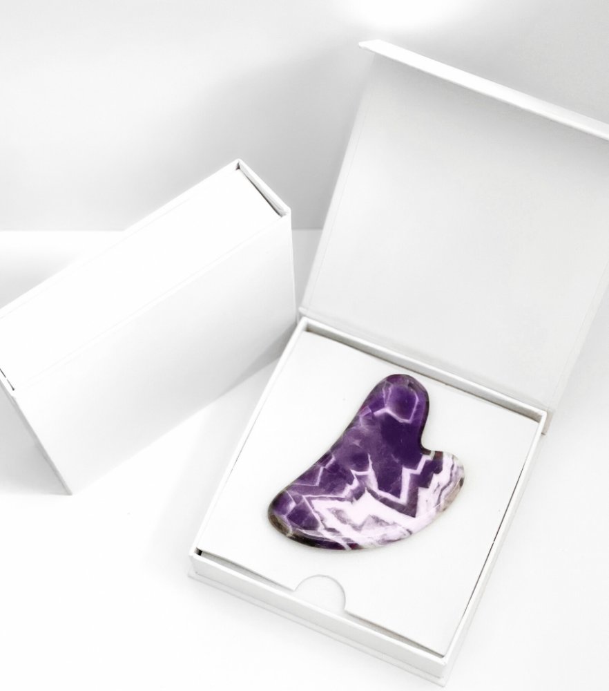 Ametystový kámen Gua Sha je vhodný jak k masáži obličeje, tak k masáži jiných partií Vašeho těla. Jemná masáž stimuluje průtok krve ve vaší tváři a díky tomu se mnohem lépe projeví účinky vaší oblíbené hydratační péče.