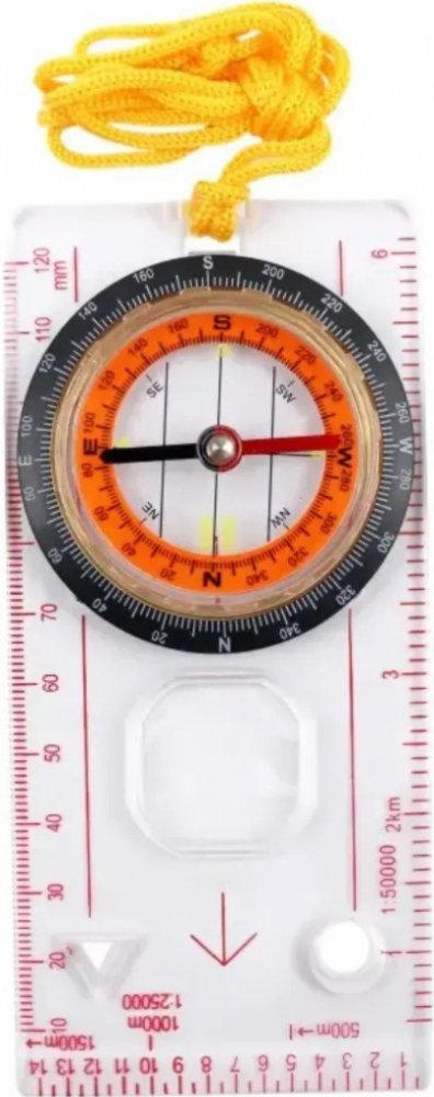Buzola slouží pro jednoduchou orientaci v terénu. Díky průsvitnému plastu lze buzolu položit na mapu a vidět detaily pod ní.