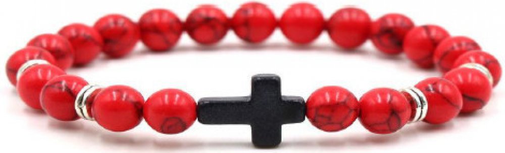 Náramek z kamenů s křížkem. Náramek je umístěn na kvalitním flexibilním kroužku, pro snadné nasazení na ruku.
