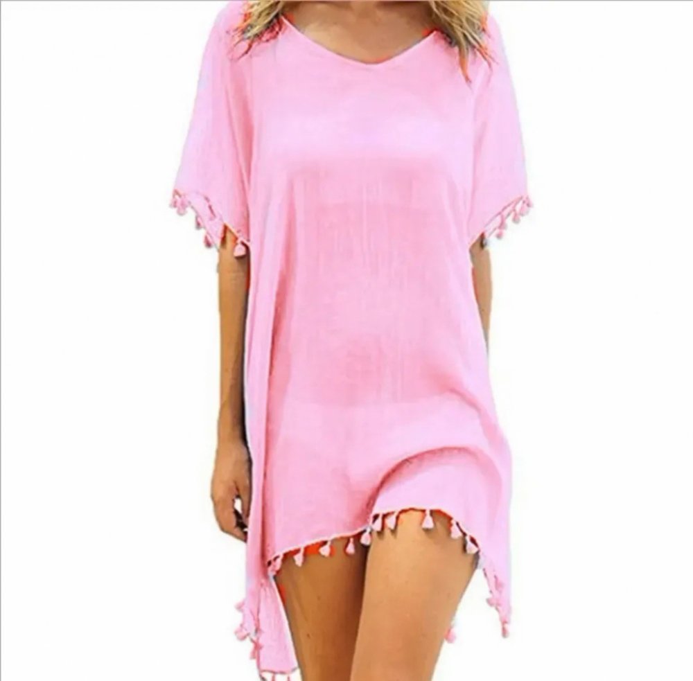 Romantické plážové šaty, vyrobené z lehké viskózy. Po obvodu jsou šaty ozdobeny malými uzlíčky. Šaty si zamilujete pro svou pohodlnost. Jsou příjemné na dotyk, vzdušné a zároveň sexy. V těchto šatech na pláži zaručeně upoutáte pozornost.