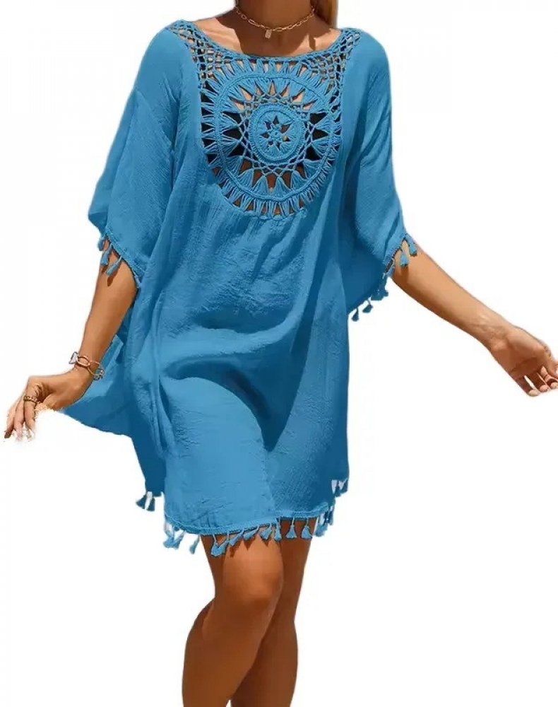 Romantické plážové šaty, vyrobené z lehké viskózy. Po obvodu jsou šaty ozdobeny malými uzlíčky a uprostřed výšivkou. Šaty si zamilujete pro svou pohodlnost. Jsou příjemné na dotyk, vzdušné a zároveň sexy. V těchto šatech na pláži zaručeně upoutáte pozornost.
