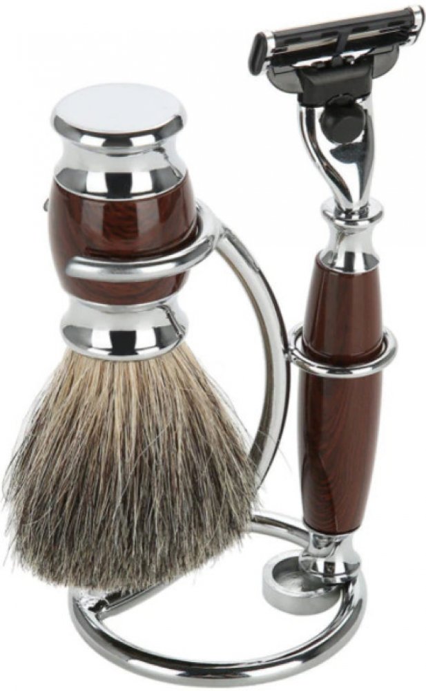 Kvalitní a designově velmi povedená 3-dílná dárková sada na holení v imitaci slonoviny, která je určena všem milovníkům mokrého holení. Kovové části jsou vyrobeny z mosazi a jsou pochromované nebo poniklované. Rukojeť štětky a holicího strojku je vyrobena z velmi kvalitní pryskyřice, která je odborně řemeslně zpracována a leštěna. Štětka je vyrobena z čistých jezevčích štětin. Je určena pro všechn...