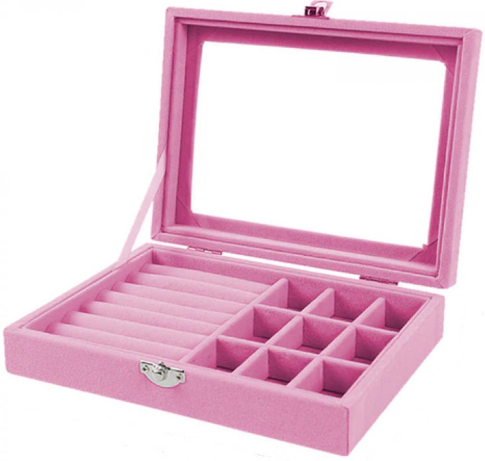 Šperkovnice s průhledným víkem na manžetové knoflíčky, prstýnky, nebo drobné šperky. Kazeta má v sametovém interiéru vyjímatelný organizér na drobné šperky a 7 podlouhlých drážek pro přehledné uložení manžetových knoflíčků nebo prstenů.