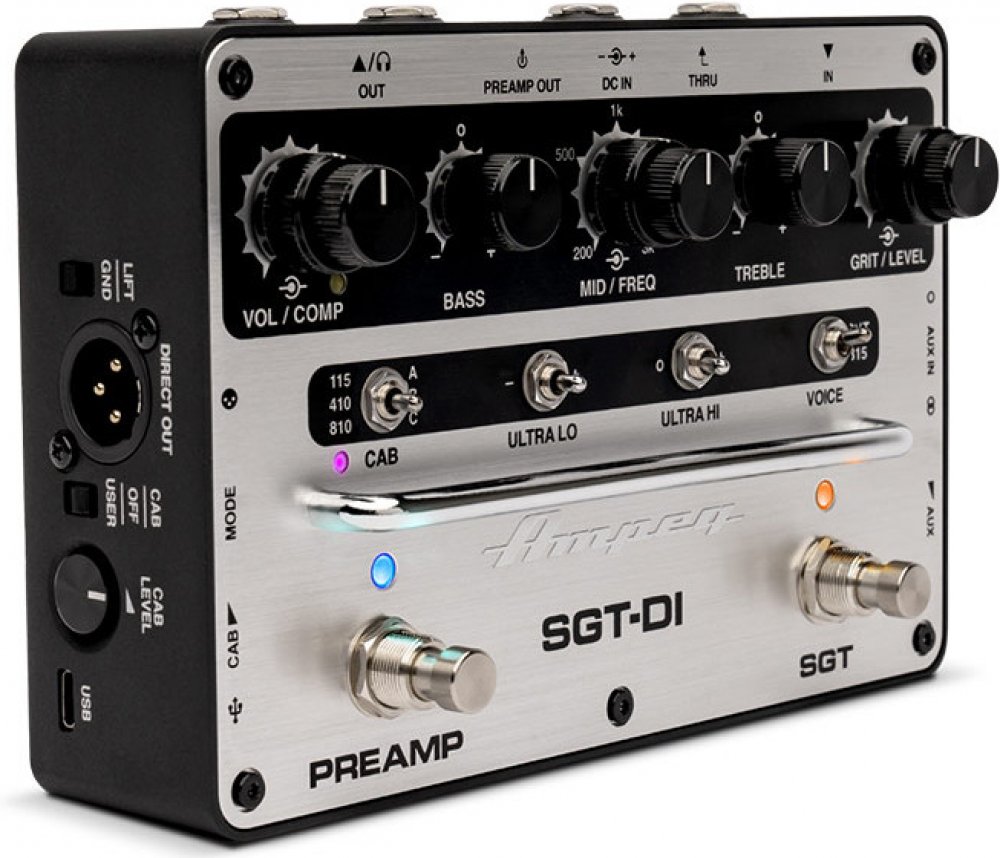 Ampeg SGT-DI je baskytarový předzesilovač a direct box v jednom. Poskytuje moderním baskytaristům kompletní sestavu v jediném stompboxu. Je vybaven vylepšeným obvodem pro zkreslení zvuku overdrive Super Grit Technology s ikonickými zvuky Ampeg SVT a B15, všestranným 3pásmovým ekvalizérem s vypínatelným obvodem Mid. Dále jsou k dispozici přepínače Ultra-Hi a 3pásmové Ultra-Lo, nastavitelný kompresor a sekce se vstupy Aux streo a mono is voldačem úrovně, sluchátkový výstup či USB.