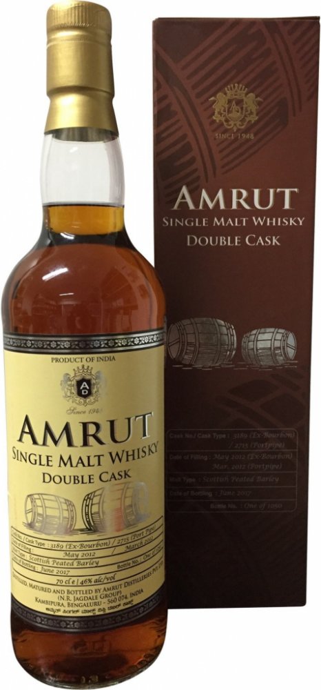 Amrut Double Cask je jednosladová whisky z Indie, která zraje v sudech z ex-bourbonu a ex-Sherry. Tato kombinace sudů dodává whisky komplexní a bohatou chuť s tóny ovoce, koření a dřeva. Whisky má zlatavou barvu a lehce olejovou konzistenci.