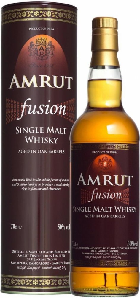 Amrut Fusion, třetí nejlepší whisky na světě za rok 2010 podle Jima Murraye, je destilovaná z ječmene ze Skotska a z Indie, čímž vytváří skutečné spojení těchto dvou zemí.