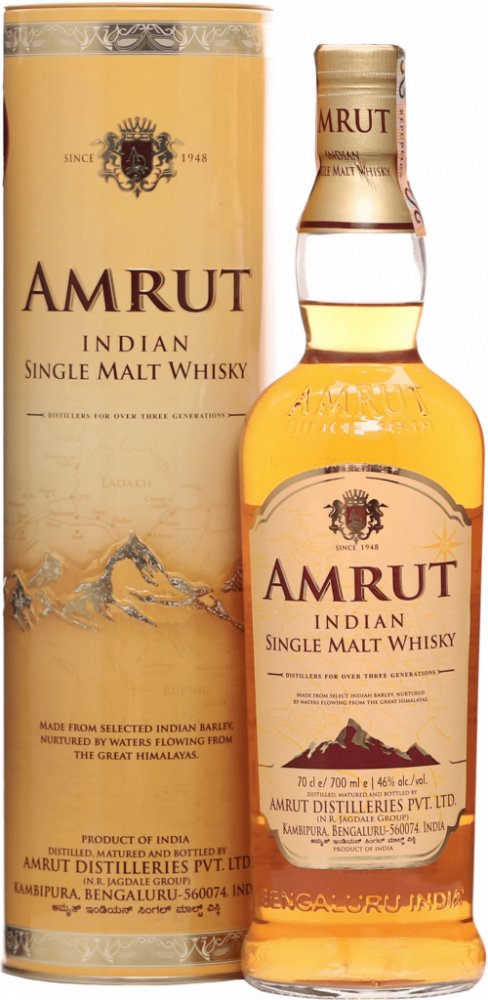Indian Single Malt je mladý destilát, který ovšem v nemilosrdném klimatu indického Bangaloru velmi rychle zraje, a to v nových sudech z amerického dubu a sudech po bourbonu. Tak vzniká chuťový profil, který se stal příznačným pro všechny whisky Amrut a který je odlišuje od jiných whisky. Indian Single Malt je skvělou vstupní bránou do světa Amrut. Ve vůni téměř perfektní hořkosladká vyváženost s tóny lékořice a bourbonu. V chuti výjimečně plná s nasládlostí ječmene a dubu, tóny bourbonu s lékořicí a melasou, ale také ječmene, který chuti poskytuje novou dimenzi.