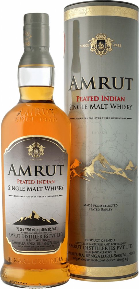 Amrut Peated obsahuje vysoký podíl sladového ječmene, který byl uměle vysušen nad hořící rašelinou. To samo o sobě je patrné ve vůni, kterou můžeme popsat jako suše koženou. Náznak citrusových plodů whisky prodlužuje její lehké tony. Whisky je suchá a kořeněná, ale neztrácí své sladké tóny. Vanilka a karamel dominují zralému konci.