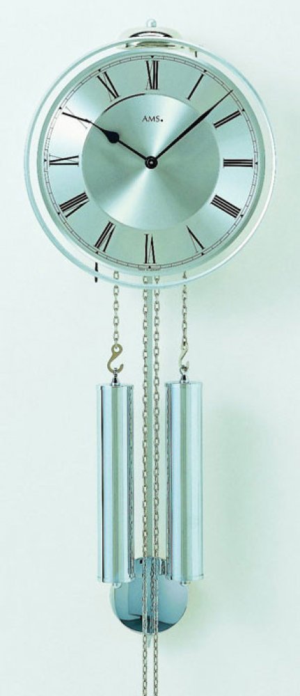AMS kov stříbrné analogové natahovací nástěnné